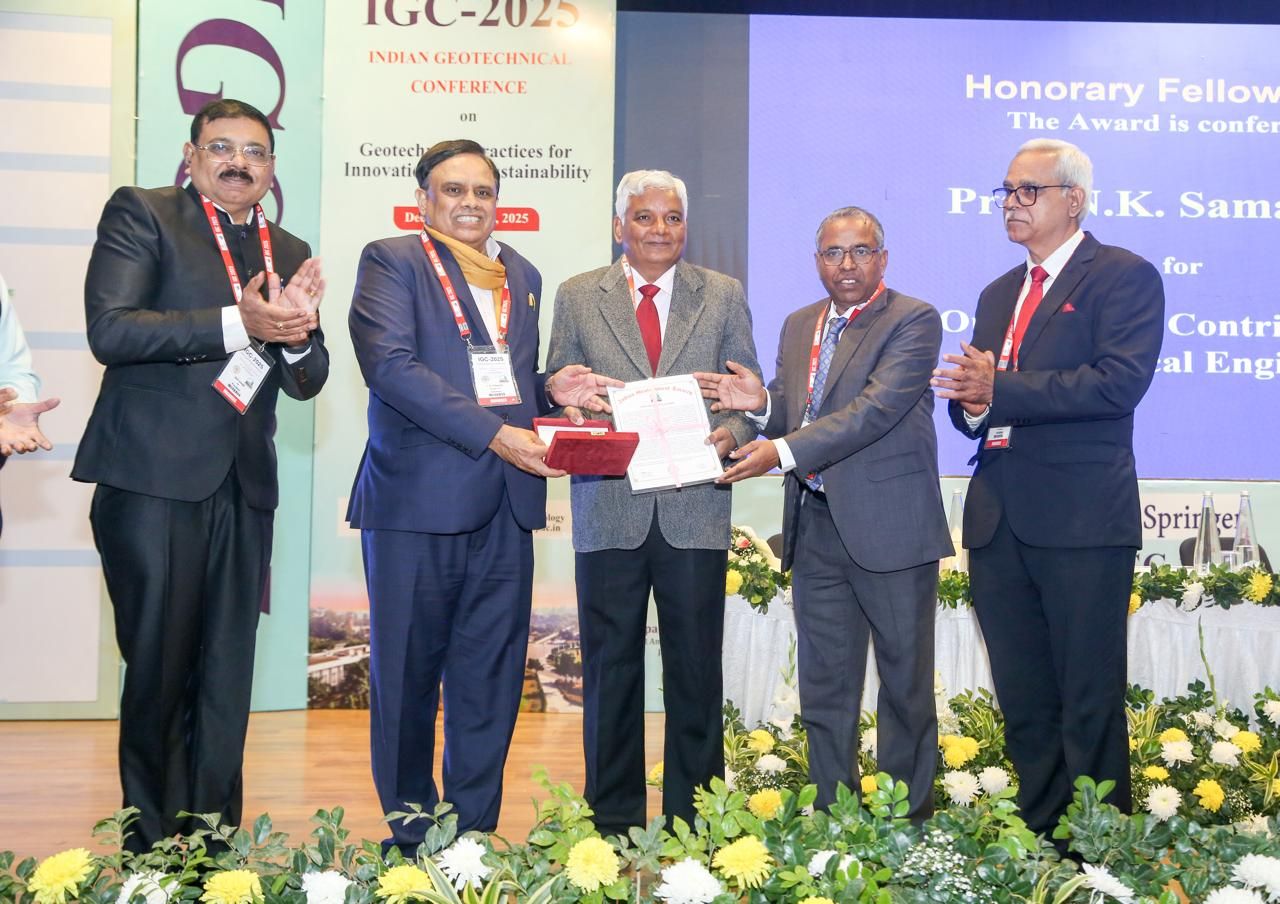| Abstract: | The Indian Geotechnical Conference (IGC-2025) was successfully organised at Dr. B. R. Ambedkar National Institute of Technology Jalandhar from December 18 to 20 by the Indian Geotechnical Society (IGS) Jalandhar Chapter in association with the Department of Civil Engineering. The conference was inaugurated by T. G. Sitharam, Chairman, All India Council for Technical Education, who emphasised the role of geotechnical engineering in sustainable infrastructure development and highlighted the need for innovation, quality research, and stronger academia–industry collaboration.A. K. Agnihotri, Organising Chairman and Chairman, IGS Jalandhar Chapter, welcomed the delegates and outlined the objectives of the conference. A. P. Singh, Secretary, IGS, spoke on the growth of the society, while Anil Joseph, President, IGS, highlighted the significance of the event and future directions of the society. Welcoming the dignitaries, Prof. Binod Kumar Kanaujia, Director, NIT Jalandhar, expressed gratitude to IGS for selecting the institute as host and highlighted its academic and research achievements.The academic sessions began with the 47th IGS Annual Lecture by Deepankar Choudhury of Indian Institute of Technology Bombay, who spoke on advances in geotechnical earthquake engineering.The conference witnessed participation from over 550 delegates and featured 12 keynote lectures, 2 invited talks, 14 theme lectures, and 455 technical paper presentations, along with an industry exhibition involving 24 sponsors. The inaugural ceremony concluded with a vote of thanks by H. S. Chore, Secretary, IGS Jalandhar Chapter. |